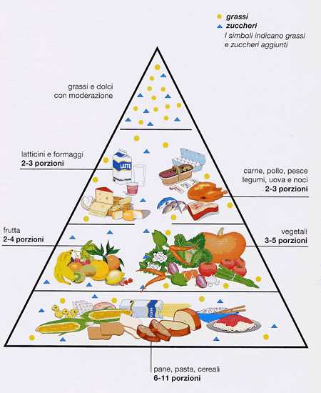 1) Non tutti i grassi hanno le stesse valenze nutrizionali. Nella precedente versione tutti i grassi venivano collocati verso l’apice. Ora solo i grassi saturi (per lo più di origine animale, come il burro), mantengono questa posizione, mentre i grassi di origine vegetale (ma non tutti sono uguali, meglio, ad esempio, l'olio di oliva extravergine) sono collocati verso la base della piramide, prevedendone il consumo quotidiano.