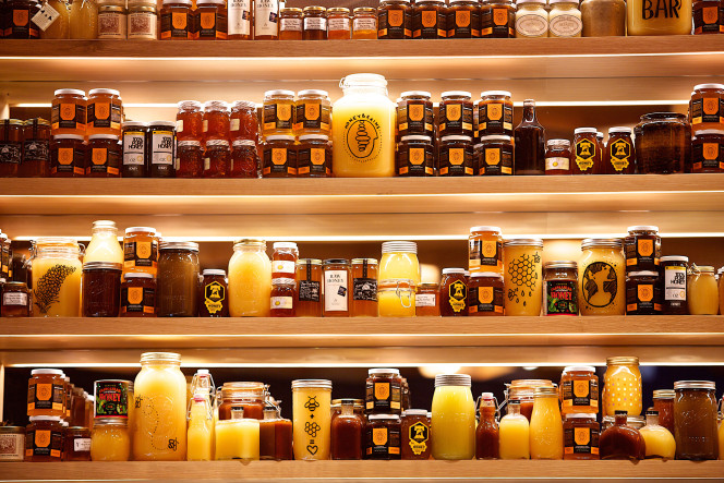 Questo ristorante può ridurre il rischio di AD?Il ristorante ha una parete dorata piena di prodotti di miele per i clienti. (Foto: Francesco Mastalia)