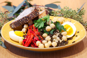 Questo ristorante può ridurre il rischio di AD?Un piatto dell'Honeybrains: hummus con ceci e lenticchie (Foto: Francesco Mastalia)