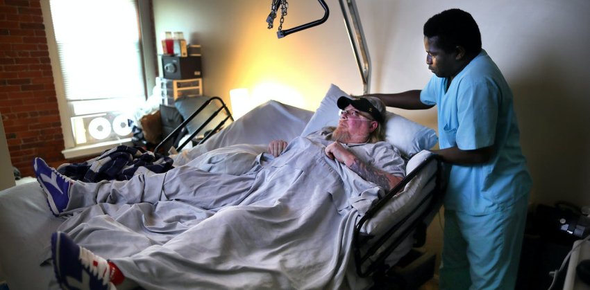 home care resident with caregiverFoto: John Tlumacki/The Boston Globe via Getty Images