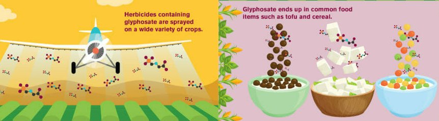 Gli erbicidi contenenti glifosato sono spruzzati su molte colture, e il glifosato può finire in diversi cibi, come i cereali.