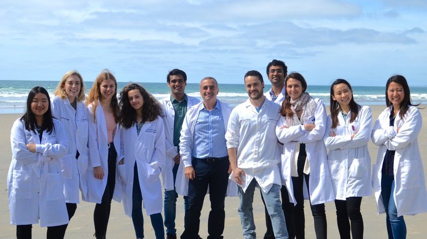 Davide Dulcis (centro) e i collaboratori del suo laboratorio alla UC San Diego
