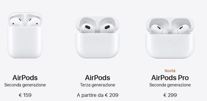 (*) Il sito italiano di Apple ha prezzi diversi (verificato alla data dell'articolo):