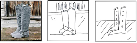 I disegni hanno avuto punteggi da 1 a 5 in base ai dettagli e alla precisione. I partecipanti sono stati valutati anche per la tendenza normale (chiamata «estensione di confine») a richiamare un'immagine con uno sfondo più grande e un primo piano più piccolo del reale. Nell'esempio degli stivali, questo significa che le persone tendono a disegnare gli stivali più piccoli di quanto non siano nella fotografia originale. Lo sfondo prende pertanto una parte più grande dell'immagine, quindi il termine «estensione di confine».