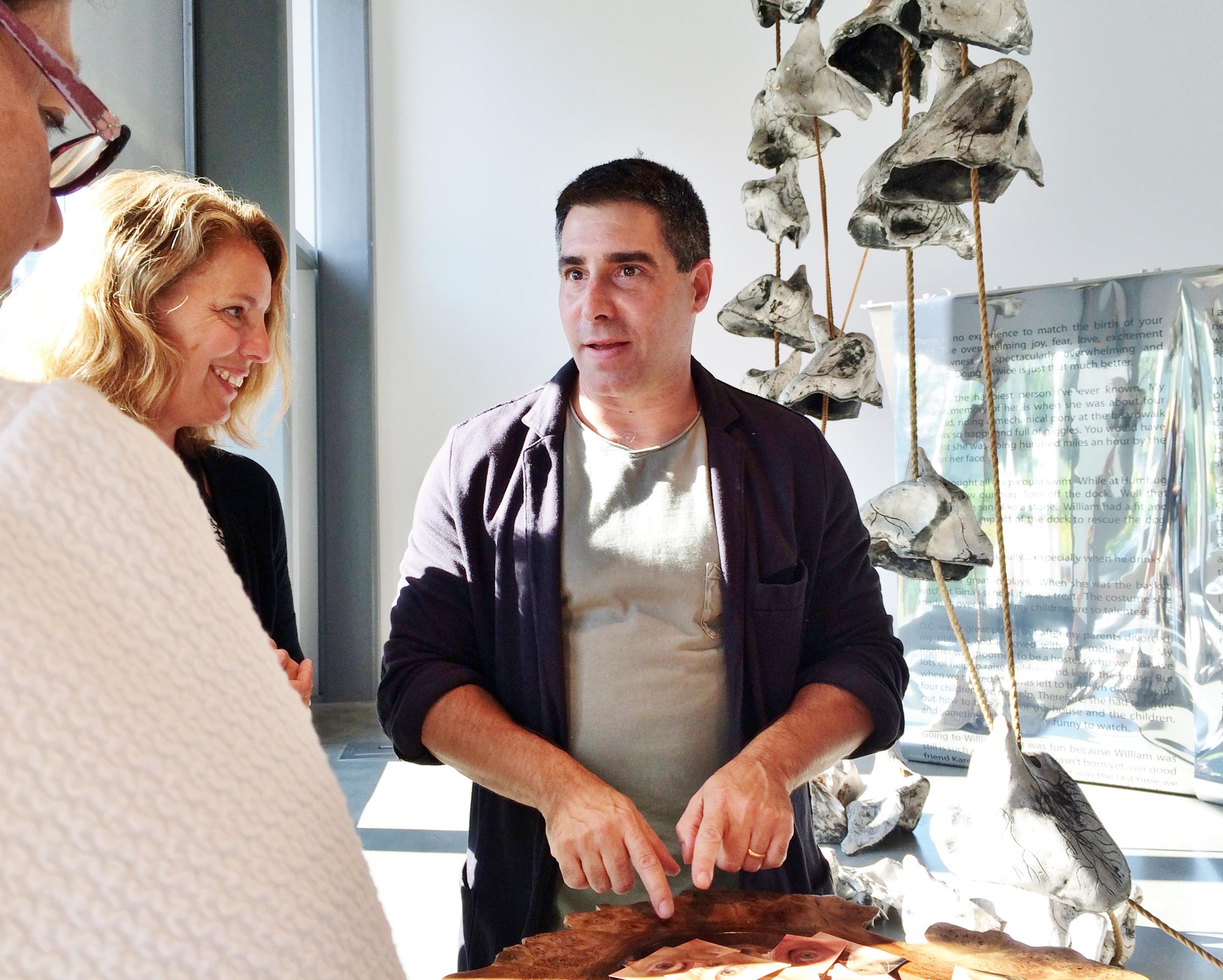 Snyder si ferma davanti a un'altra delle sue opere. E' una fila di corde spesse, su carrucole, dal pavimento al soffitto, costellate di enormi pepite di ceramica. Lui dice che è un modello 3-D dei circuiti di memoria del cervello: "I ricordi si formano nel cervello e sono contenuti e gestiti nei circuiti di memoria. Questi sono i neuroni che sono collegati in colonne e strati nel cervello". Ma in questa opera i neuroni sono collegati liberamente, e sembra che stiano scivolando giù per le corde. La struttura sta collassando, i ricordi si disintegrano, come succede nei malati di Alzheimer.