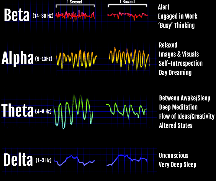 Giovani adulti e anziani hanno onde cerebrali diverse. E' questo il declino cognitivo?Le quattro diverse lunghezze d'onda del nostro cervello: Beta (attenti, attivi, occupati a pensare), Alfa (rilassati, introspettivi, immaginativi), Theta (tra sonno e veglia, meditazione profonda, creativi, stati alterati) e Delta (sonno molto profondo, incoscienza).