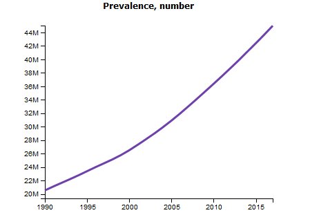 I ricercatori hanno attribuito l'aumento della diffusione della malattia sia all'invecchiamento che alla crescita della popolazione globale.