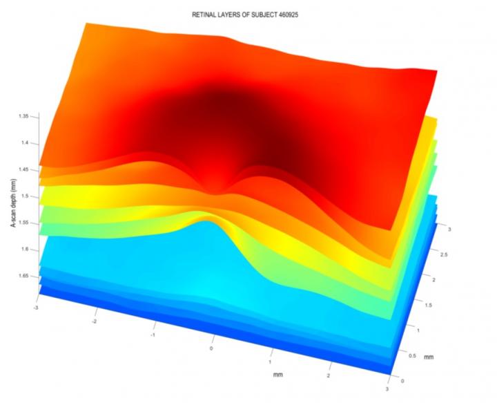 Da retina di ciascun partecipante è stata ottenuta un'immagine tridimensionale di una regione quadrata che misura 6x6 mm, usando la tomografia a coerenza ottica (OCT). "Con l'OCT, un raggio di luce può scrutare quest'area della retina in 2,5 secondi. Questa tecnica di uso frequente è non invasiva, molto veloce ed economica", ha spiegato la Salobrar.