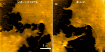 Un esempio di questa capacità si vede nell'immagine 1 (a destra), dove si nota un fibroblasto prima e dopo il trattamento con l'ormone insulina, che enfatizza intensamente l'increspatura sul bordo della cellula.