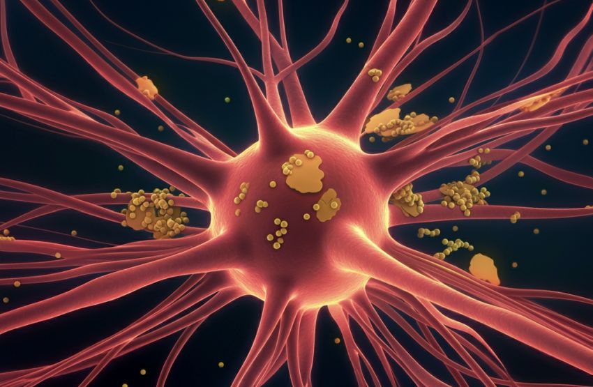 Placche di amiloide attorno a un neurone (Fonte: image fx / freepik.com)