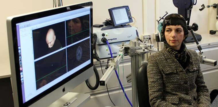 Nella rTMS, una bobina elettromagnetica viene posta sul cuoio capelluto e usa impulsi magnetici per indurre i neuroni, le cellule nervose del cervello, ad attivarsi. L'obiettivo è allenare i neuroni in modo che ottengano prestazioni migliori in futuro.