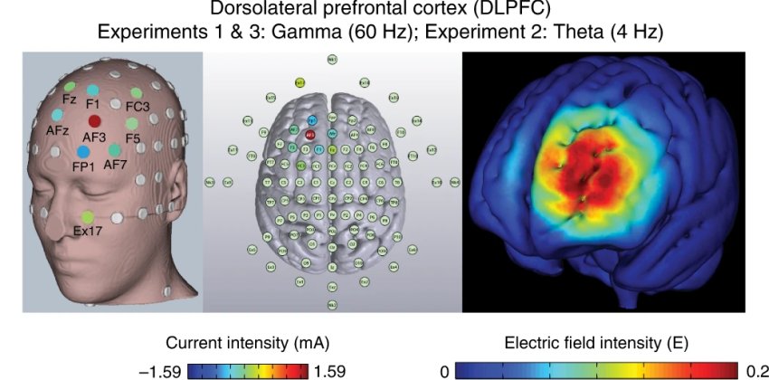 Stimolazione elettrica transcranica della corteccia prefrontale alla frequenza gamma.
