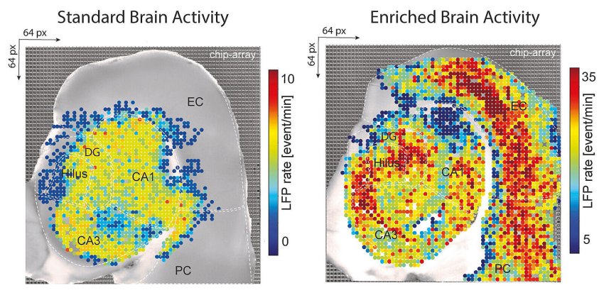 I ricercatori di Dresda hanno esplorato la questione di come un'esperienza arricchita influisce sui circuiti del cervello. Per questo, hanno sviluppato e impiegato un cosiddetto neurochip con oltre 4.000 elettrodi per rilevare l'attività elettrica delle cellule cerebrali. Questa piattaforma innovativa ha permesso di registrare contemporaneamente lo 'sparo' di migliaia di neuroni. L'area esaminata - molto più piccola delle dimensioni di un'unghia umana - copriva l'intero ippocampo dei topi.