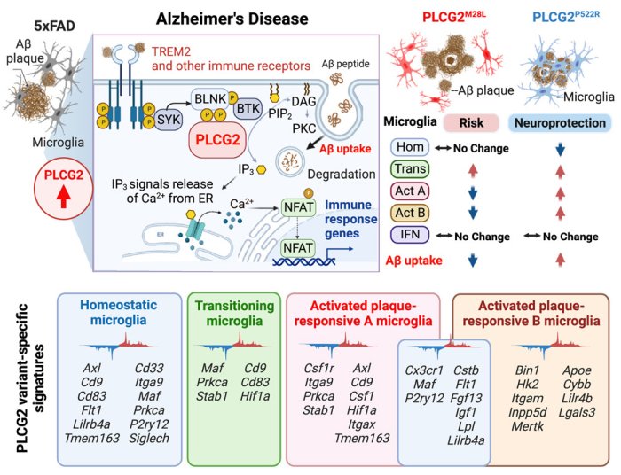 PLCG2 associated with increased Alzheimer riskRiepilogo grafico dei risultati della ricerca di Tsai et al.