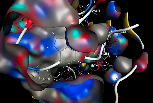 Vista laterale del centro attivo di un glutaminile-ciclasi batterico. (Fonte: © Fraunhofer IZI)