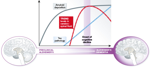 Con uno studio trasversale su un'ampia coorte di pazienti con diversi livelli di compromissione cognitiva e diversi stadi della malattia, i ricercatori hanno scoperto che la quantità di un frammento di TREM2 nel liquido cerebrospinale era più alta durante le prime fasi caratterizzate da lievi sintomi di deterioramento cognitivo. I suoi livelli diminuiscono di nuovo nei pazienti in fase avanzata con demenza piena, riflettendo strettamente il profilo dell'attività delle microglia durante il corso della malattia.