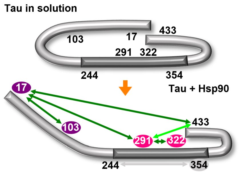 Con analisi strutturali, Drescher e il suo team sono riusciti a dimostrare che il chaperone provoca l'apertura della conformazione a graffetta della tau: piega verso l'esterno le 'braccia” della graffetta.