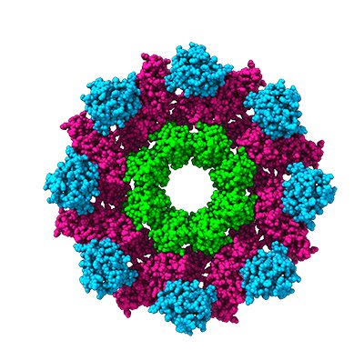 La struttura simile ad anello della proteina Sarm1, sviluppata con cristallografia a raggi X e microscopia crio-elettronica.I disturbi neurodegenerativi come il morbo di Parkinson (MP) e di Alzheimer (MA) sono sulla linea di tiro dopo che dei ricercatori hanno identificato un bersaglio terapeutico attraente.
